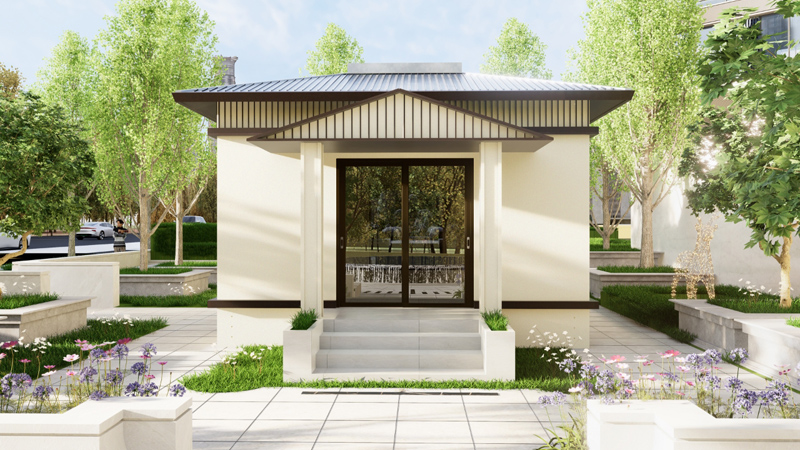 The 72 Series Smart Public Toilet is designed for high-traffic outdoor environments such as scenic areas, parks, and rural developments. It includes separate facilities for men and women, with a larger footprint for increased capacity.