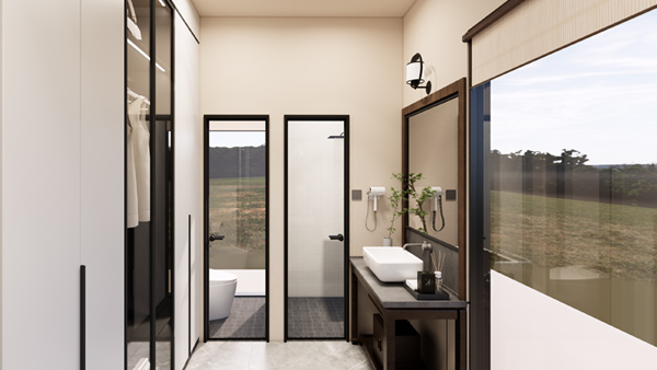 The 72 Series vacation home is simple yet cozy, offering a perfect mix of modern comfort and natural surroundings. Inside, it's equipped with up-to-date amenities for a relaxing stay.